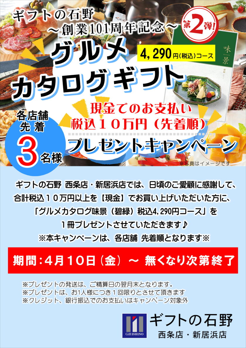 大切な方へのお返しを【現金】で、税込10万円以上、お買い上げいただいた【各店先着3名様】に…人気グルメカタログ『味景(4,290円相当)』を1冊プレゼント!📗🥩