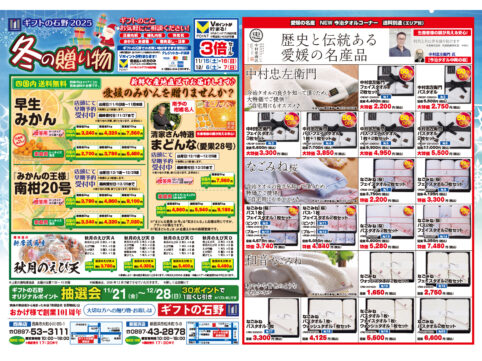 当店オリジナル 手づくり広告が 11月14日(金)愛媛新聞折込チラシに登場♪ 今回は『愛媛の本当に良いもの』を ご提案したい という想いで 生産者様の顔が見えるお品を 揃えました💡 ※少し照れながらも お...