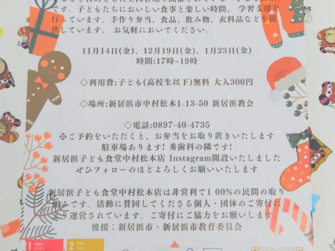 『新居浜子ども食堂』さんの ご活動をシェアさせて頂きます。 この情報を必要とされている親御さん、 そして 子どもさん達に、 1人でも 多く届きますように。 ※当店は『新居浜子ども食堂』さんの 【子ども支援活動】を応援して...